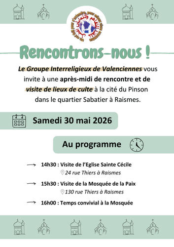 Le Groupe Interreligieux de Valenciennes vous invite à une après-midi de rencontre et de visite de lieux de culte à la cité du Pinson dans le quartier Sabatier à Raismes